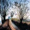Alte Kopfweiden stehen am Wegesrand und scheinen durch ihrAstwerk den Himmel einzufangen. Das Räderwerk des Fuhrwerkes hinterließ im Schlamm tiefe Spuren.